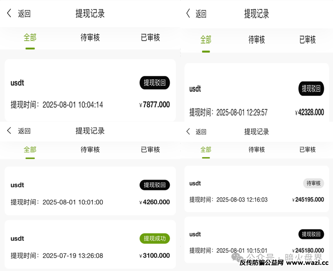 结果就是这样的下场,8月1日开始,提现全部被驳回,关闭提现并发公告称,提现资金流水已突破500亿?牛都被吹上天了,还把银监拉出来背锅,其目的就是锁仓后进行二次收割,先锁仓会员的资金,再以监管的名义让你充值解锁,其实不管你充不充值都解不了锁,因为操盘团伙已经要跑了,只是想在跑之前再收割一波而已。