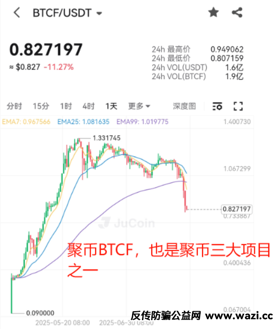 再看看所谓的明星产品蝴蝶协议,价格已经暴跌了,这个也是最近聚币搞3%日息项目5M互助盘的原因。再不发行高息产品,核心的聚币快撑不住了。而所谓的蝴蝶协议是5月开始的,3个月的时间就撑不住了,不知道这个萤火协议可以多长时间。