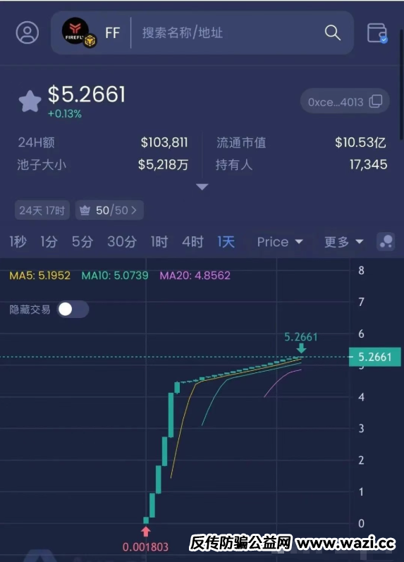 收益依赖FF代币持续暴涨,但该代币由项目方全权控盘。链上数据显示,前20个地址掌控超80%的FF流通量,币价涨幅实为虚假挂单制造繁荣假象。