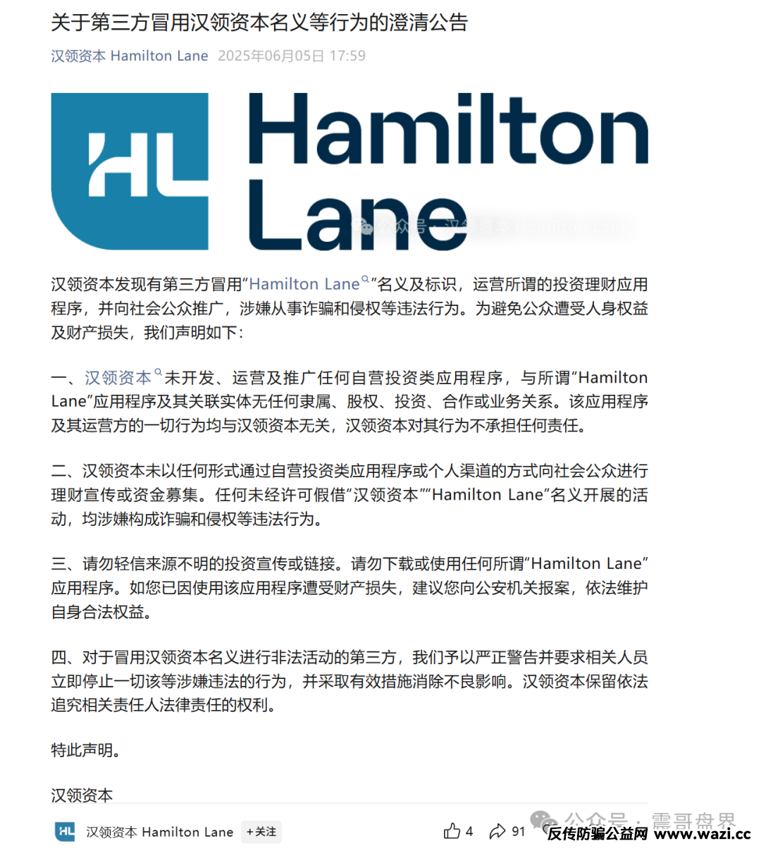 老铁们震哥今天必须给大伙儿扒皮个坑人玩意儿!最近有个打着"汉领资本"旗号的资金盘在作妖,这货跟正牌美国资管公司半毛钱关系没有。这帮骗子搞的山寨APP连封包都是国内烂大街的H5框架,Logo倒是直接偷正主家的。