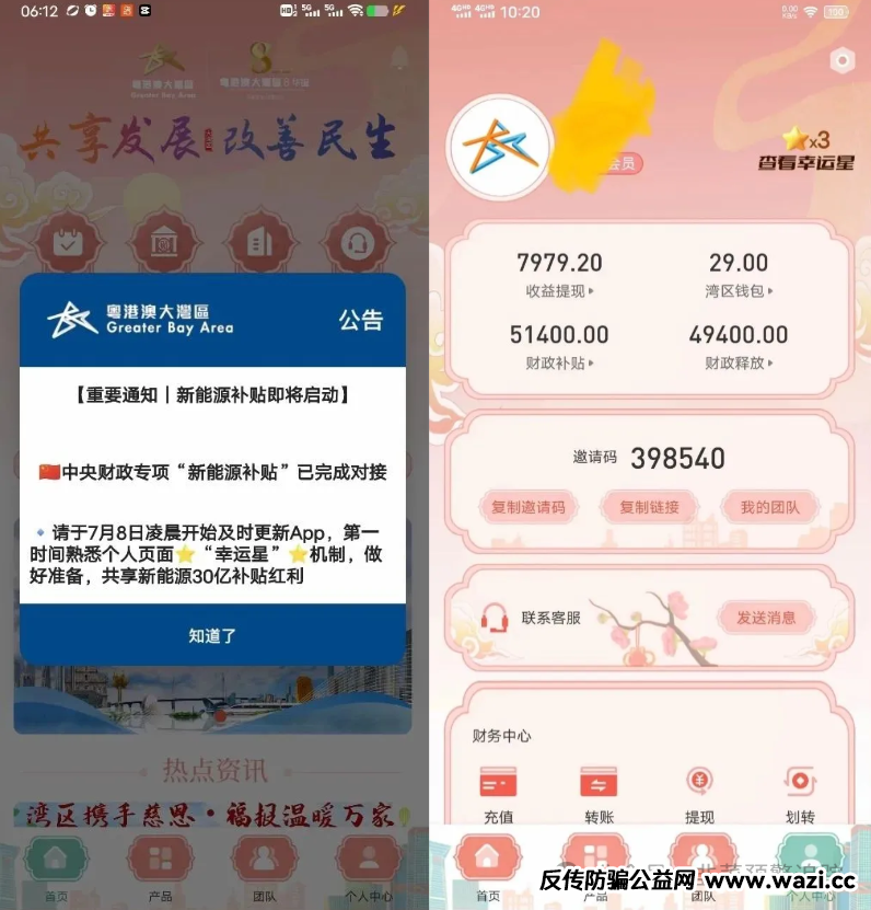 近日,,“粤港澳大湾区”APP打着政府项目的旗号招摇撞骗,现改名"共建大湾区APP"。看似正规,实则是精心设计的资金盘骗局,多地警方已立案侦查。