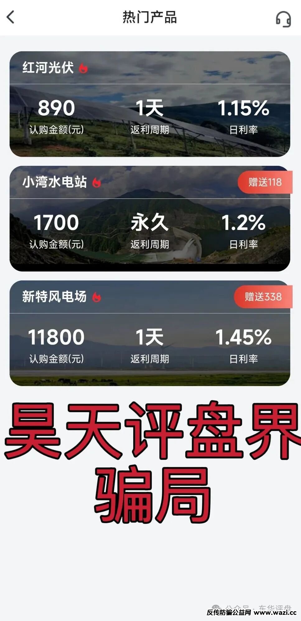 昊天评盘界:近期大量粉丝爆料了一个叫中国华能的分红类资金盘骗局,此资金盘骗局就是典型的柬埔寨杀猪盘,冒充正规公司进行诈骗活动,和人家正规公司没有任何关系,是在8月1日开盘的分红类资金盘项目骗局。诈骗团伙规定每天签到给收益,上线了多个虚假产品,分别为320元、2000元、16500元、32600元等,日收益在1.2%以上,泡沫已大,高度预警,即将崩盘跑路!
