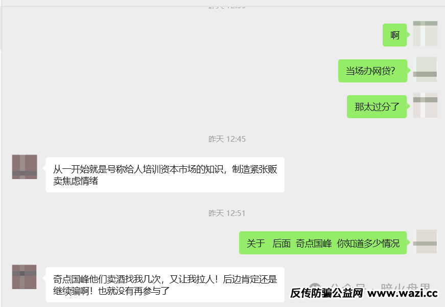 圣商对于过去的事情只字不提,又拉着会员去买酒,据受害者向小诺反映,大部分老会员都不想参与卖什么酒,只想拿回之前的收益。现在参与奇点国峰卖酒的人大部分是后期招募的新代理。很多老代理跟着圣商走了七八年了,不赚钱根本就是心力交瘁,根本没有心情去参与。