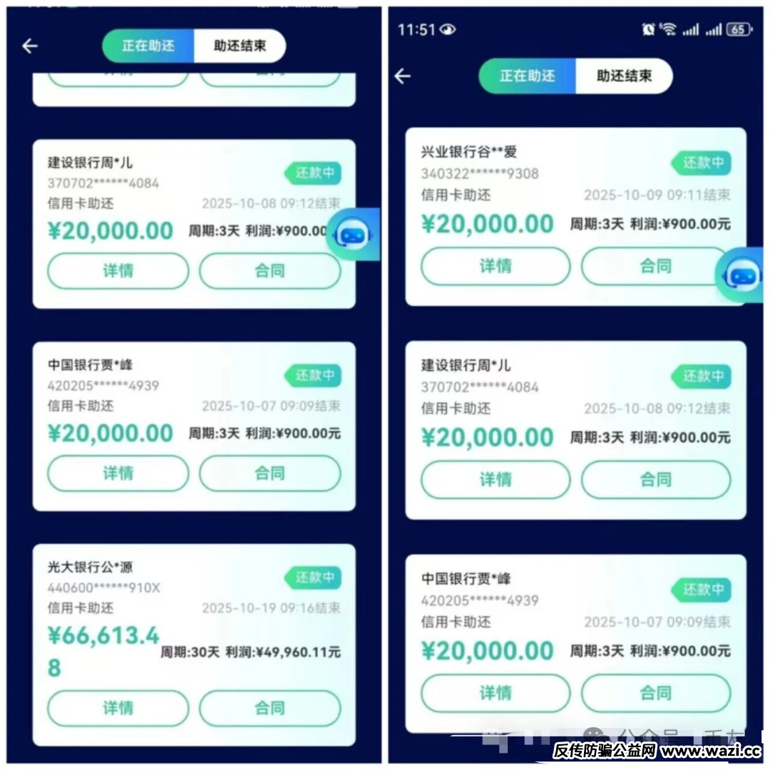 这种“收益与投入挂钩”的模式,本质是用新用户的资金支付老用户的“分红”,毫无实际经营支撑。2024年底“卫守付”APP的爆雷早已敲响警钟:该平台同样以“代还返高息”为诱饵,前期返利稳住投资者,最终APP失联、老板跑路,涉及四百多人、数千万元资金无法追回 。“WeLab智还”的高息神话,终究会因资金链断裂重蹈覆辙。所谓“代还”,本质是借助非本人账户完成还款,而这早已成为银行风控的重点打击对象。2023年以来,工农中建交等国有大行,以及招商、民生、浦发等超10家股份制银行均发布公告,明确将非本人还款纳入重点监测范围 。