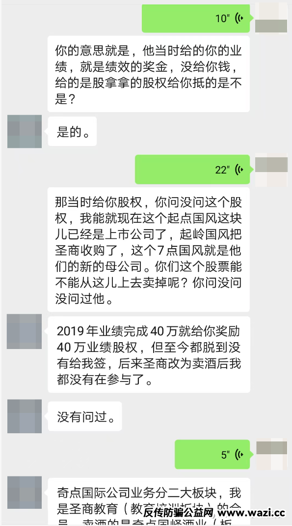 圣商以股权奖励为由,对外宣传达到业绩要求就会奖励公司的股票。很多人为了达到业绩,就拉几个人进去,自己替这些人交钱,为的就是拿到股票奖励。结果拿到股票也没有办法变现,有很多人就是这样被坑的。