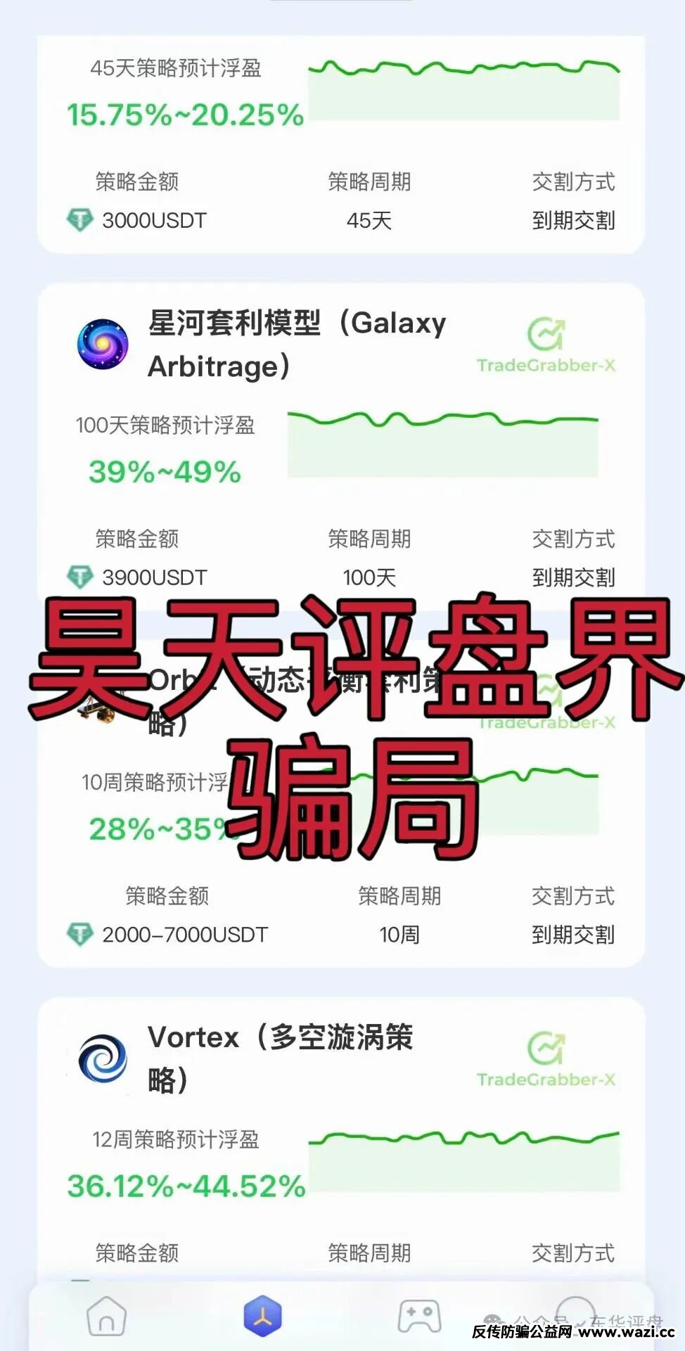昊天评盘界友情提醒:TGG-X量化又一个分红类资金盘骗局,泡沫已大,高度预警,即将崩盘跑路!后面会持续关注!近期知乎,小红书,微博,抖音等app都有冒充昊天的诈骗团伙,记住了我们不做项目,更不会去推广任何项目,除公众号外其他一律不是本人,切勿上当受骗!