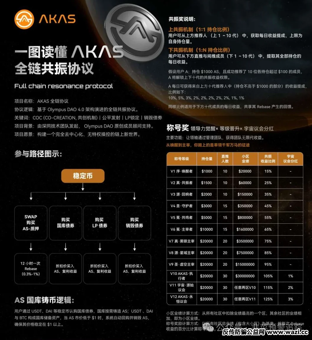 AKAS自称DeFi2.0创新者,承诺高息分红,但其代币流动性集中,LP永久锁定无证据,合约可修改。收益靠传销式拉新,幕后团队曾涉跑路项目。奥拉丁二次重启,质押送币或引接盘,承诺超高收益违背金融规律,靠喊单营造紧迫感。投资要理性,识别资金盘,看有无实质产品技术、考察流动性、警惕传销推广。远离此类陷阱,守护财产安全。