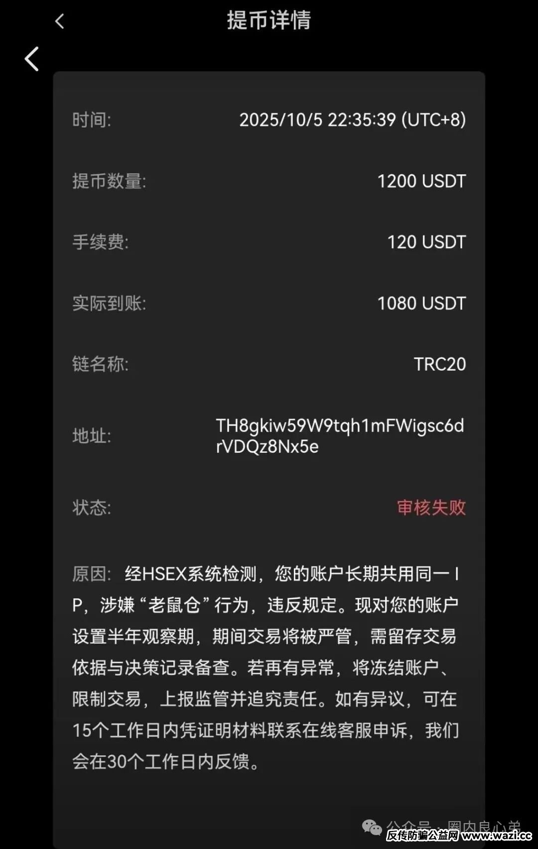 粉丝提供被HKEX煜志金融”交易所单割的图,经HSEX系统检测,你的账户长期共同一个ip,涉嫌所谓老鼠仓行为,对你账户进行半年观察期并监管,这简直让人就很恶心了,明摆着我就是硬白嫖你,你还拿我们没办法,属于项目方典型又立贞洁牌坊,又在这里当婊子。