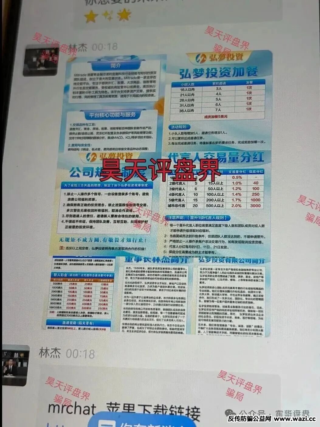 群里几千个会员,原来那个老黄导师现在改名叫林杰了。他们包装了个弘梦投资APP,说是和Mitrade交易所合作,其实还是老套路。