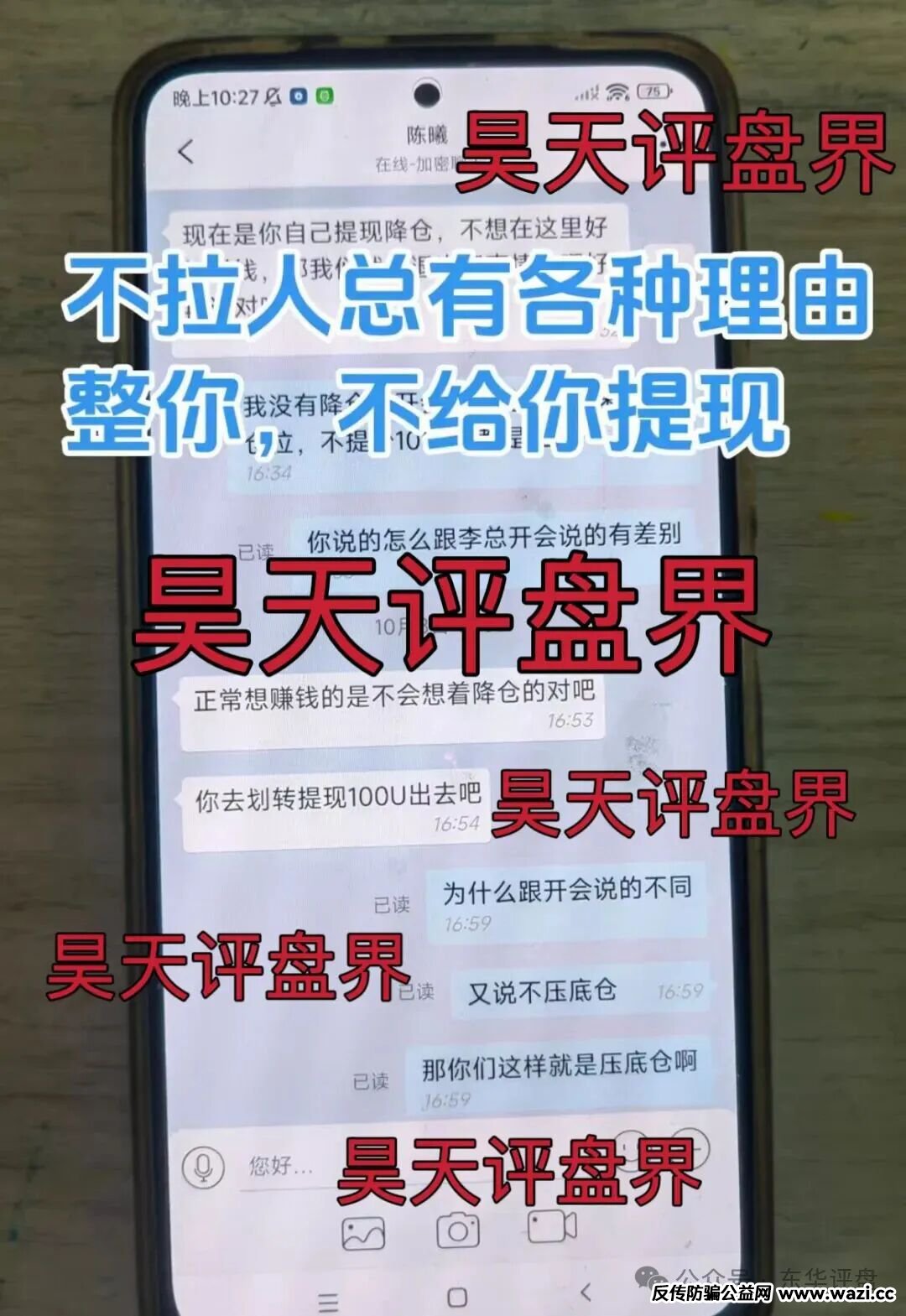昊天评盘界友情提醒:聚通交易所合约跟单类资金盘骗局,操盘手李睿信圈钱过亿,又大量单割了700多个会员,高度预警,即将崩盘跑路!后面会持续关注!近期知乎,小红书,微博,抖音等app都有冒充昊天的诈骗团伙,记住了我们不做项目,更不会去推广任何项目,除公众号外其他一律不是本人,切勿上当受骗!
