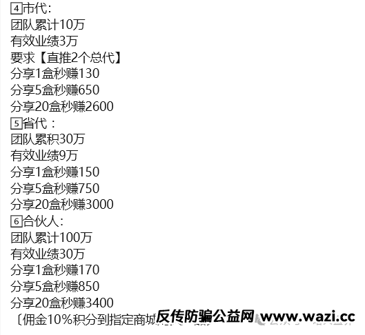 后三个级别:市代、省代、合伙人虽然没有要求个人消费金额,但是对团队业绩就有了更高的要求。