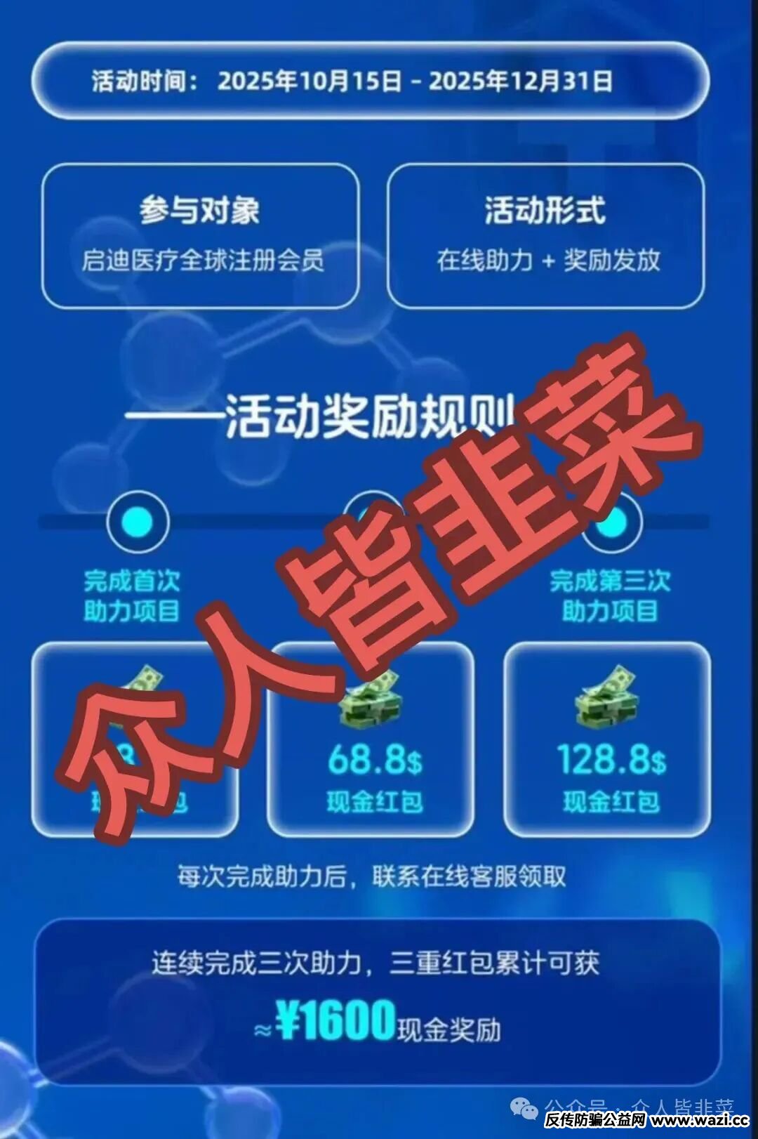 粉丝投稿的一个叫健康启迪协会的诈骗资金盘,利用投资医疗产品赚钱的噱头,吸引了不少人参与其中,属于分红模式骗局,小编搜索了一下关于这个骗局的信息,貌似在之前就已经单割过。