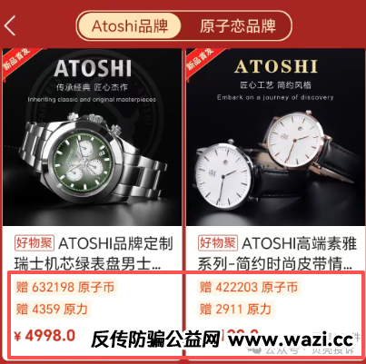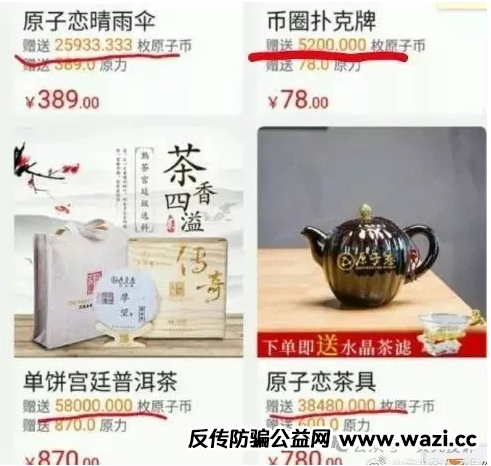 商城上的每件商品,都明码标出要“赠送”的原子币。