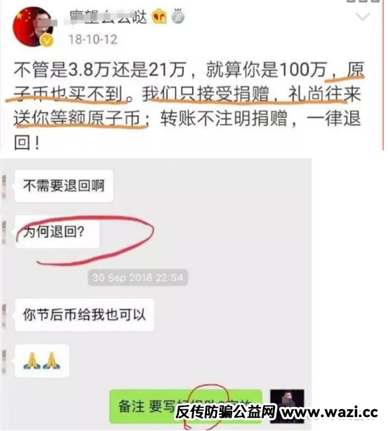 以购物赠送原子币为幌子吸引会员“消费(实为投资)”。平台的东西价格虚高,像以前云联惠,云联商城上的商品普遍与其他商城相比虚高20%左右,云联惠是每天万分之五左右返积分,16%的投资,将给会员带来每年约114%的回报;原子链商城上的商品也是虚高,原子链不断地让“赠送”的原子币“升值”,后期会员就可以出售原子币获取巨大回报。还记得超市积分吗?这个就是类似于这种的,不过是把消费搞成了类似的投资项目,以消费为幌子。为了规避法律的监管,原子链宣称原子币现阶段只赠不售,实际上这只是打了个障眼法。廖某在微博上宣称“只接受捐赠,礼尚往来送你等额原子币”既然是都是等额,也就是一手交钱一手交等额的原子币,本质上就是一种买卖。看到没有?人家多聪明,想法在规避犯罪条款,注明"捐赠"就送"等额原子币",也就"证明"没有买卖虚拟货币,也就"不算"非法?