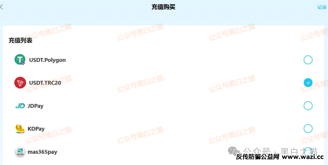 当大家看到这里就清楚了,最重要环节就是组队充值了,截图很明显,全是虚拟币钱包的地址,已经是不掩饰的吸收资金。