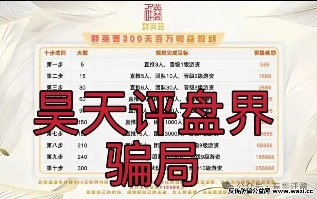 昊天评盘界:这几天不少粉丝给昊天爆料了一个叫泓睿汇群英荟)的股票跟单类资金盘骗局,据知情人爆料是原“蓝黛彩票”骗局的二次收割平移重启盘,看见一定要远离!
