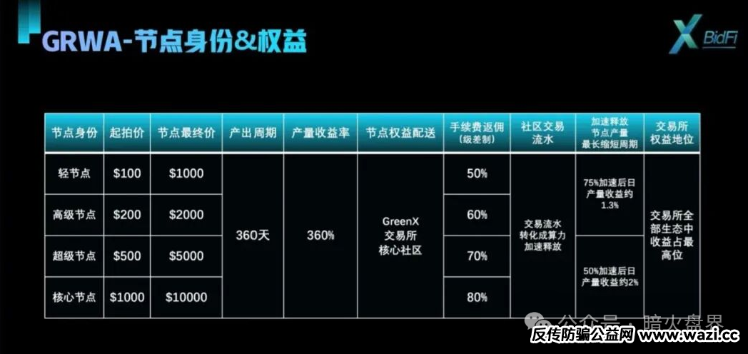 这是模式制度,声称要打造RWA赛道,分为Ai量化和竞拍Bidfi两个玩法,日化收益0.6-1.3%,还发行了一个GF空气币,总量2100万枚,销毁90%变成210万枚,还要打造成万倍币。现在出来发币的,就没有低于万倍的,口号非常一致的统一。