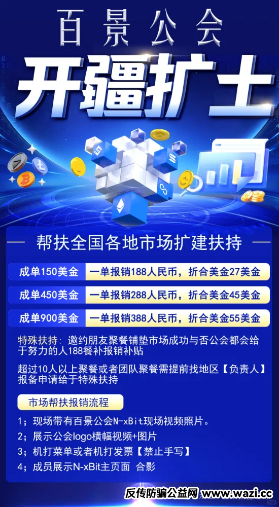 百景公会N-XBit交易所已运行五个多月,操盘手圈走上亿资金。目前部分团队撤离,正在收割会员,随时可能崩盘。该交易所以跟单合约为幌子,设置入金门槛,通过推荐奖励、合伙人分红拉人头,靠新人资金维持收益。还采用聚餐洗脑、报销餐费等手段拉拢人,并开设工作室推广。提醒大家切勿参与,避免侥幸心理,不拿养老钱或借钱投资。同时要提高风险意识,学会规避金融行业风险。