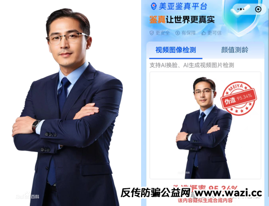 更吃惊的是,百度百科上那么多人突然去编辑他的丰功伟绩,通过检测辨识是高达95%伪造的图像。