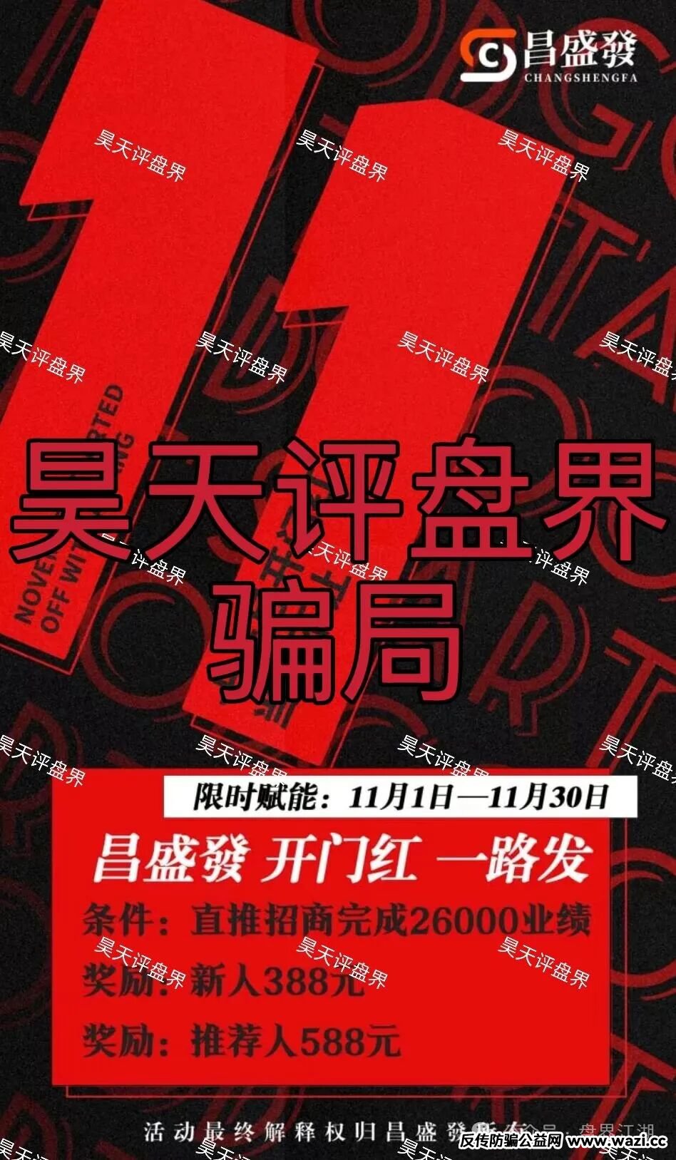 昊天评盘界友情提醒:昌盛發ncm期货跟单类资金盘骗局,大量单割会员,高度预警,即将崩盘跑路!后面会持续关注!近期知乎,小红书,微博,抖音等app都有冒充昊天的诈骗团伙,记住了我们不做项目,更不会去推广任何项目,除公众号外其他一律不是本人,切勿上当受骗!