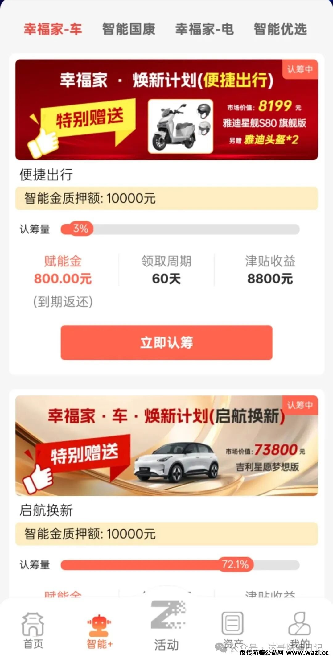 预警提醒【智能中国】大额产品已上线,高收益不可靠,本金丢失找不到,小汽车不好拿,都醒醒吧!...