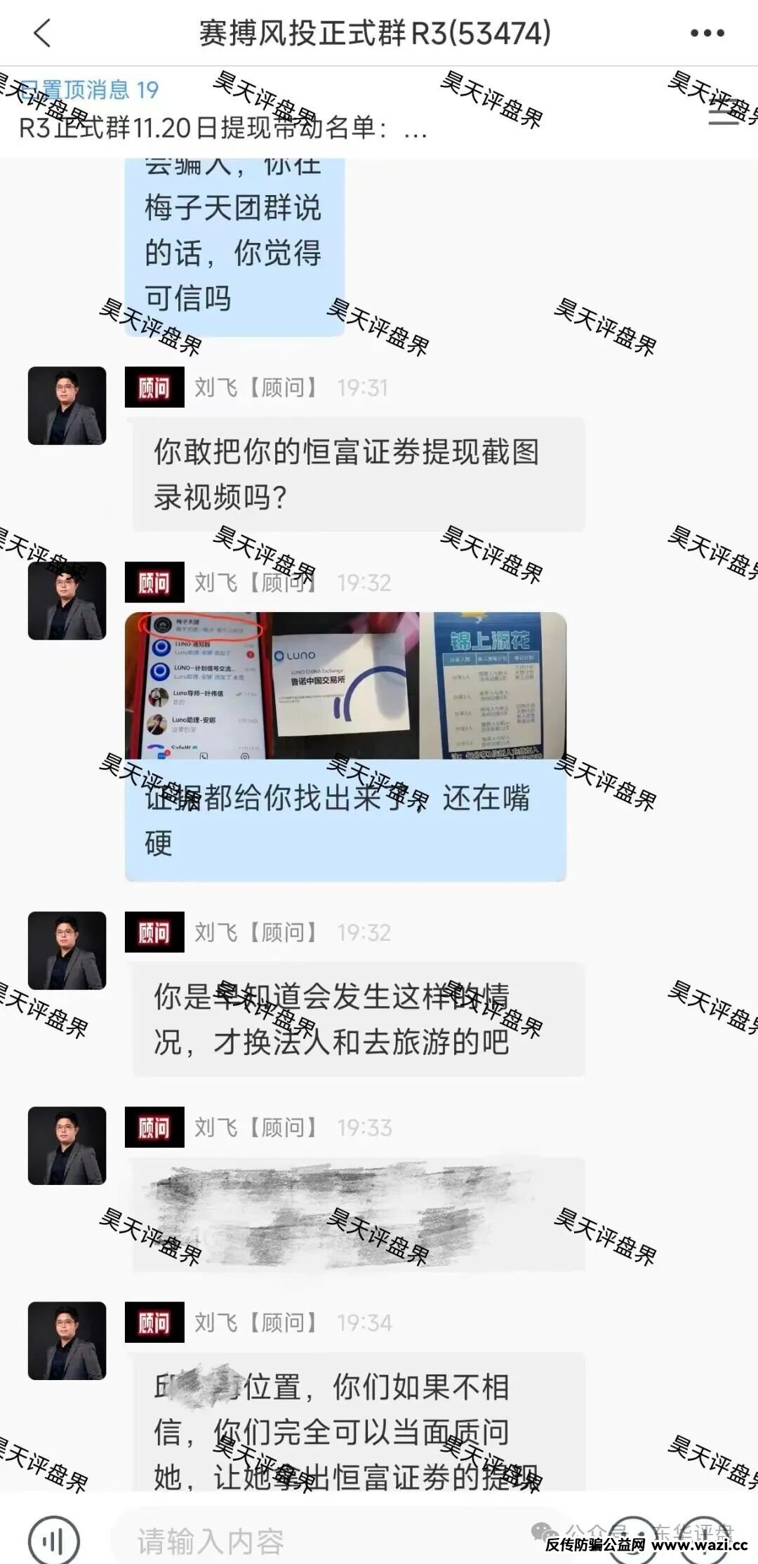 昊天评盘界友情提醒:LUNO鲁诺中国交易所合约跟单类资金盘骗局和赛搏风投群里公开疯狂互撕,对于受害者而已,昊天建议大家还是直接报警维权就行了!后面会持续关注!近期知乎,小红书,微博,抖音等app都有冒充昊天的诈骗团伙,记住了我们不做项目,更不会去推广任何项目,除公众号外其他一律不是本人,切勿上当受骗!
