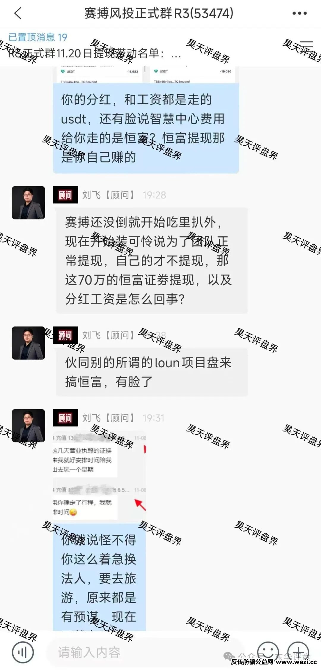 昊天评盘界:这几天赛搏风投跑路闹的沸沸扬扬,而一个叫LUNO鲁诺中国交易所的合约跟单类资金盘骗局和赛搏风投在群里疯狂互撕,据知情人爆料这两个诈骗团伙其实都是柬埔寨那边的,只是不是一个园区的而已,属于竞争关系,群里诈骗犯举报诈骗犯这就有点意思了!事情的起因是赛搏风投崩盘后甩锅说是有个团队长挣了一百多万然后带人去了LUNO鲁诺中国交易所才导致的他们崩盘,然后就是群里各种互撕,其实就是他们利益分配不均导致的,崩盘了团队长都是说自己亏的没有说自己挣钱的,怕下面人闹,看群里小刘发的证据这个团队长肯定是挣钱了,然后他们怎么又翻脸了呢?很简单他们触犯到了操盘手的利益,然后顺便转移矛盾,昊天还是建议大家报警维权即可,团队长挣没挣钱警方会查清楚,据受害者反馈这个人下面亏损的会员是真不少,金额也很大,可能还会有牢狱之灾!后面这个LUNO鲁诺中国交易所昊天会专门写文章曝光,记得关注哦!: