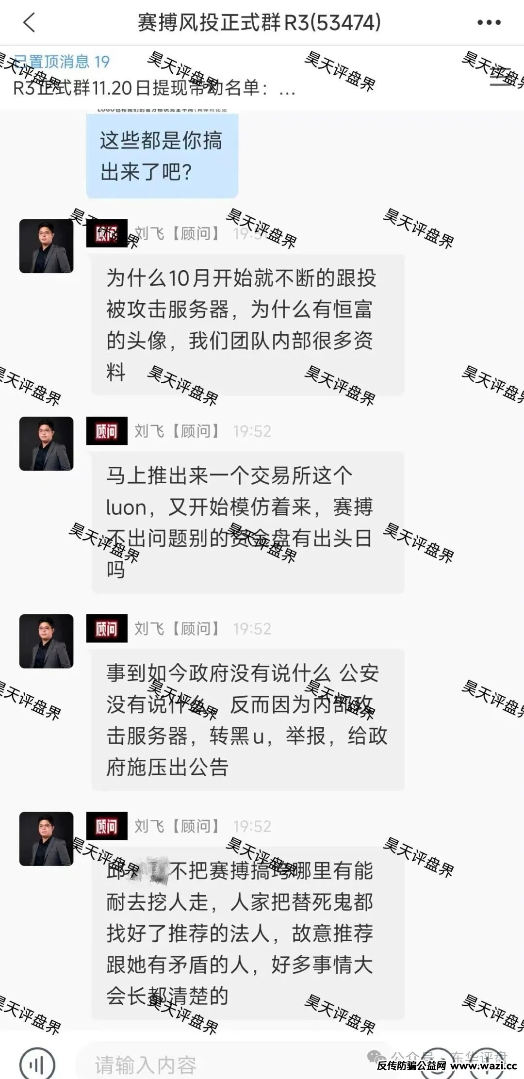 【LUNO/鲁诺中国】交易所合约跟单类资金盘骗局和赛搏风投群里公开疯狂互撕,诈骗犯举报诈骗犯这就有点意思了!