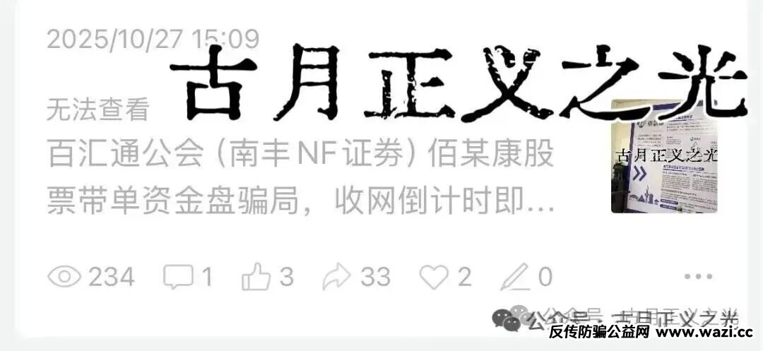 今年碰到的股票理财盘非常多,这种没有证监会审核的各种虚假项目雨后春笋样的在各大网络平台成长。许多人难挡朋友圈炫富、亲戚邀请和初期利益,渴望一夜暴富。但这种击鼓传花游戏中,只要无拉新流水枯竭,无一幸免的被割韭菜。佰宜康(百汇通公会)股票带单类资金盘骗局,柬埔寨头目郝立本注册了佰宜康(深圳)科技有限公司进行传销诈骗活动,多次举报反诈文章,同时不法分子冒充“南丰NF证劵”的名义,打着聚沙成塔的旗号,声称跟着“专家”智能炒股,即可获得高额回报,损失后公司包赔!该应用只能通过第三方链接、二维码下载,下载提示未备案,采用传销模式发展下线,收款账户为第三方个人、公司、虚拟货币,涉嫌传销、诈骗、洗钱等违法行为。之前小编曝光过一次今天竟然被骗子投诉下架了: