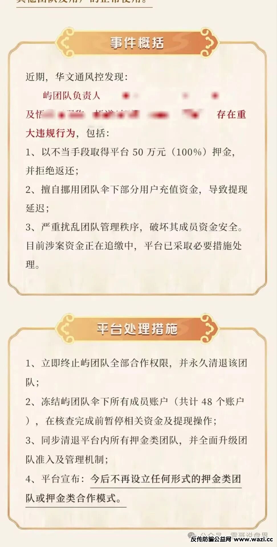 平台还甩锅团队长,并给每个会员发送短信说团队长拿50w押金跑路,把封号不给提现的事情撇的一干二净,让会员都把矛头指向团队长,这是多么无耻的项目方才能干出来的事情。