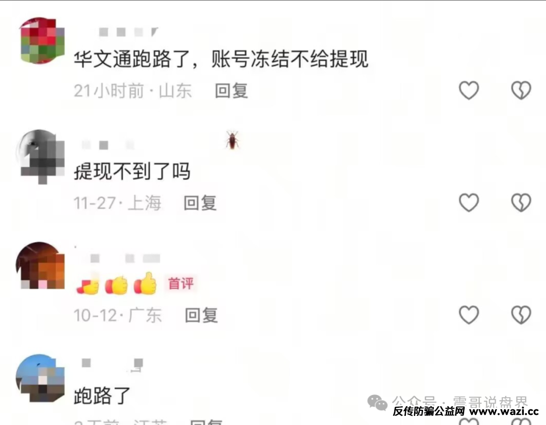 震哥接到粉丝爆料,华文通公司在杭州,是个数藏慢涨资金盘骗局,每天利息2%,是个彻头彻尾的资金盘骗局,现在已经单割了很多会员,充值到平台无法提现,账户还被冻结。