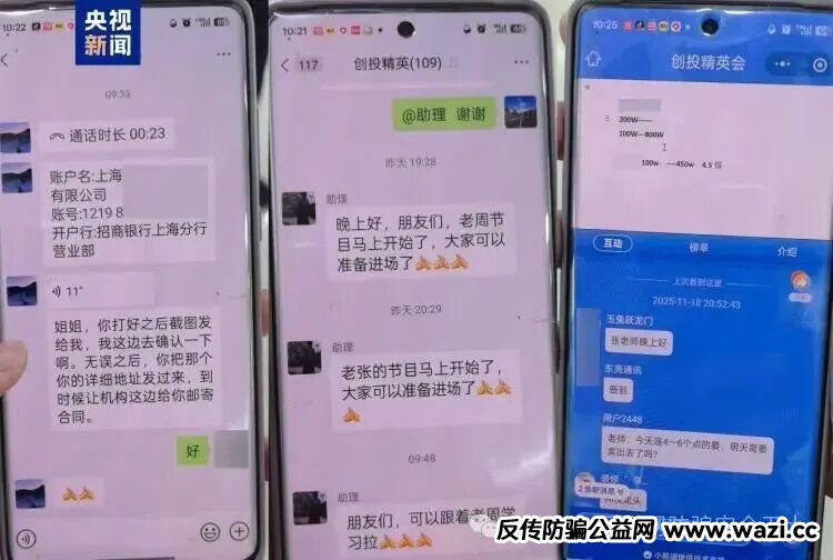 11月19日上午,上海静安区某银行网点报警称,一位老年客户正准备办理大额转账,情况可疑。民警迅速赶往银行大厅,发现一位阿姨正拿着手机,不断展示着一个名为“创投精英汇”的微信群,坚持要向一个陌生账户汇款10万元。她相信,这笔投资将让她获得超过20%的收益。