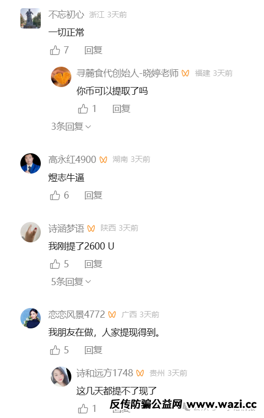 总结:现在如果还在为煜志金融崩不崩盘在这里纠结,那就是在浪费时间。有这个时间真不如去找找相关的证据,看看能从哪方面挽损。或者研究怎么在下一个盘子里回血。就在这个时候大家更要擦亮双眼,看看那些在群里为煜志金融洗白,说好话的人,都是些什么人。等全网彻底崩盘的时候,你们看看这些人又是什么嘴脸。这里面很有可能就混杂着操盘手派出来维稳的人。这些人还会带头喊口号再投资20%解冻账户,他们就是操盘手的爪牙和手中的镰刀。参与者一定要谨防这类人的洗脑言论,以免再次被收割!