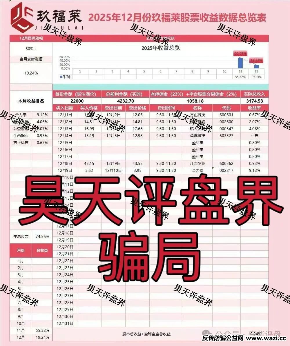 昊天评盘界友情提醒:玖福莱股票跟单类资金盘骗局,日收益2%,月收益60%,这场资金盘游戏,你现在撤离还来得及,高度预警,马上要崩盘跑路了!后面会持续关注!近期知乎,小红书,微博,抖音等app都有冒充昊天的诈骗团伙,记住了我们不做项目,更不会去推广任何项目,除公众号外其他一律不是本人,切勿上当受骗!