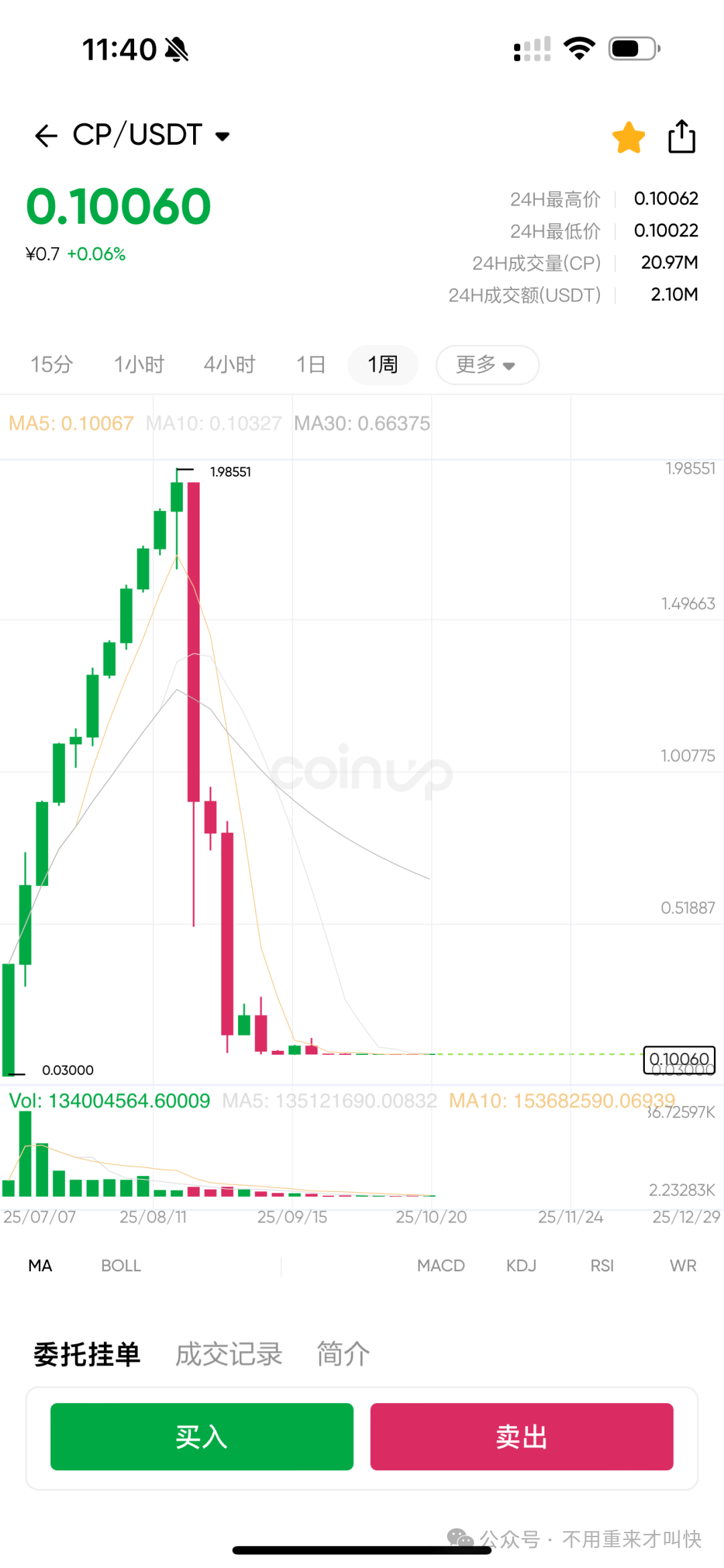 再比如,前段时间很火爆的coinup交易所,的确目前还在运营,但是价格直接跌到0.1美金: