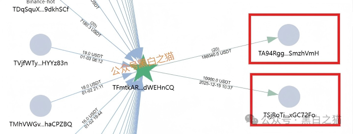 小编随机测试了USDT充值,根据溯源工具查询,这个尾号HnCQ的充值地址已经被标红为危险级别,截至2026年1月11日,注册了两个月时间跑了24万USDT的流水,而转移到尾号hVmH的钱包流水有142万USDT。