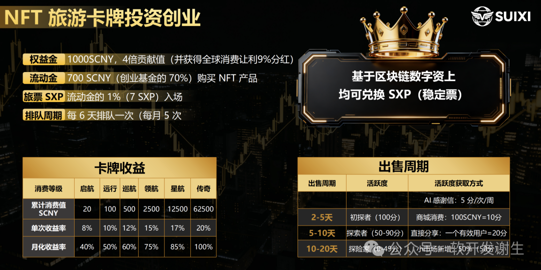 它的核心逻辑很简单:整合商家资源,吸引用户消费,招募创业者推广,然后把“商家让利+用户消费的钱+NFT入场费”,重新分配给这三方,平台自己不生产利润,只靠“分配”撬动所有人参与,实现流量自循环。